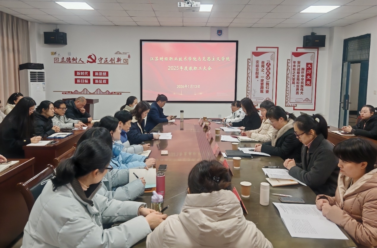 2026年1月13日,马克思主义学院2025年度教职工大会隆重召开。学校党委副书记、工会主席杜萍,工会副主席朱玛莅临指导,学院党政领导班子及全体教职工齐聚一堂,共话发展蓝图,大会由学院党总支书记费婷婷主持。