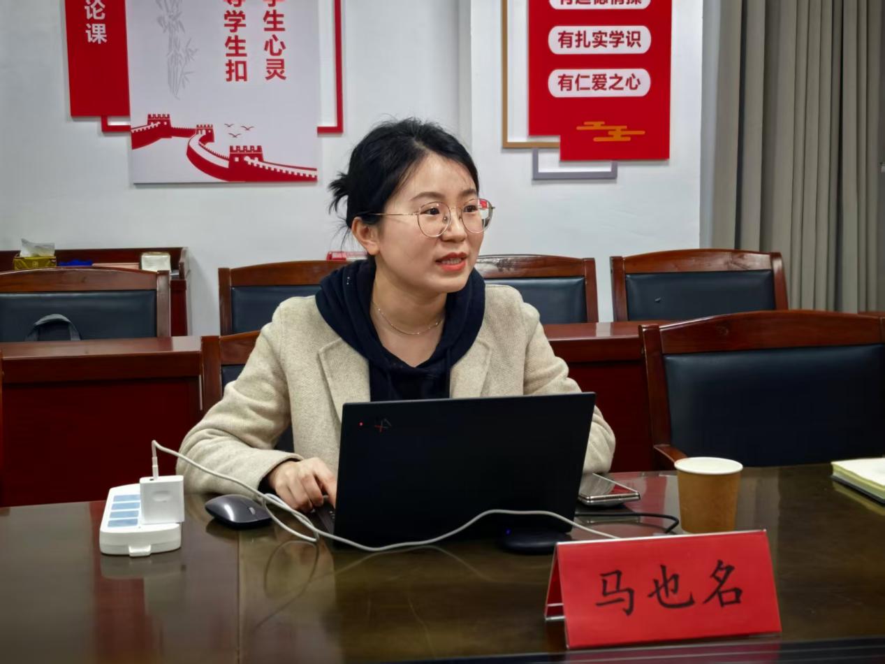 邹瑄作总结讲话。她首先对马也名老师毫无保留的倾囊相授和专业指导表示感谢。她指出,马也名老师的教学示范课有理论深度、有情感温度、有实践力度,呈现了新时代思政课的匠心设计与育人魅力,让我们受益匪浅、深受启发;马也名老师的经验分享干货满满、务实管用,既有理念引领,又有方法路径,更有实战技巧,为我们今后提升教学能力、备战教学竞赛指明了方向。她希望,全体思政课教师以此次交流为契机,认真消化吸收、对标提升,把所学所悟融入日常教学,深耕课堂、精研教学,沉下心、反复磨、多琢磨,不断提升思政课的思想性、理论性和亲和力、针对性,全力打造新时代“思政金课”,奋力谱写学校思政教育事业高质量发展新篇章!