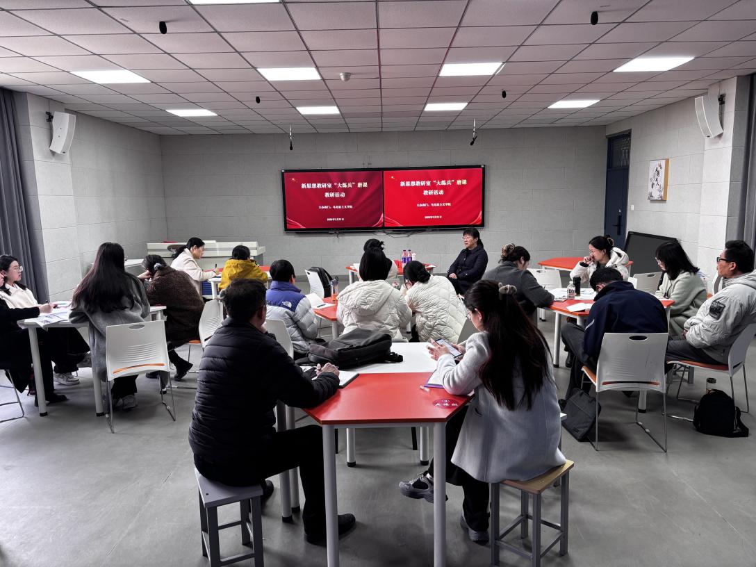 在上午的教研活动中,思政课教师王瑶、杨瑞、丁蓉蓉、李梦竹、张文玉在前期多次磨课的基础上,进一步聚焦思政课堂教学真问题,优化教学内容、精选典型案例、创新教学方法,依次进行了教学展示。马也名老师结合自身教学实践,从思政课教学效果、赛事评审等角度,围绕教学目标设定、内容逻辑、案例契合度、课件设计、板书规范、教学创新性、信息技术融合、语言表达等维度,逐一对5位展示教师进行细致点评与专业指导,提出了一系列具有针对性、实操性的改进建议,并与习近平新时代中国特色社会主义思想概论教研室老师进行了深度教学研讨。